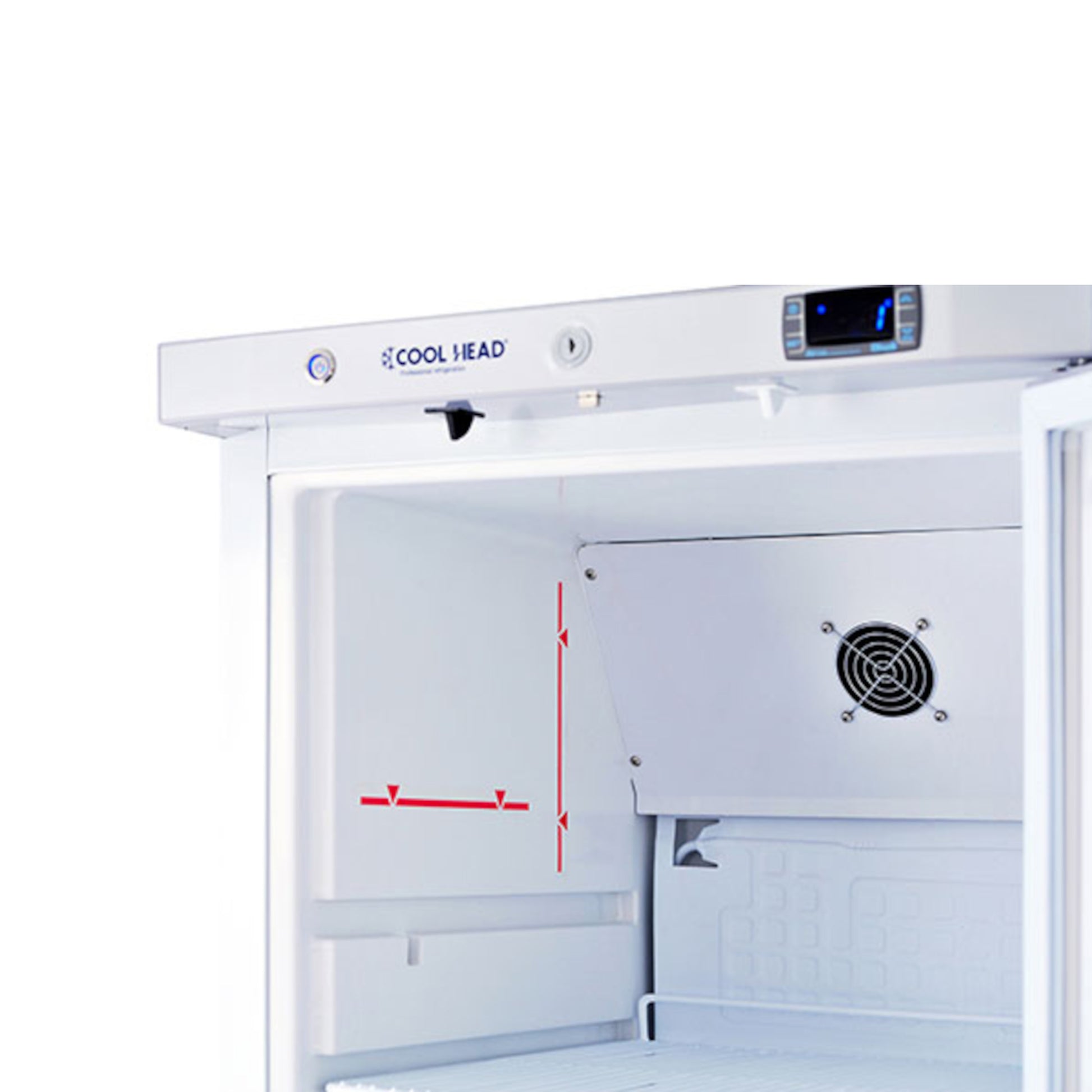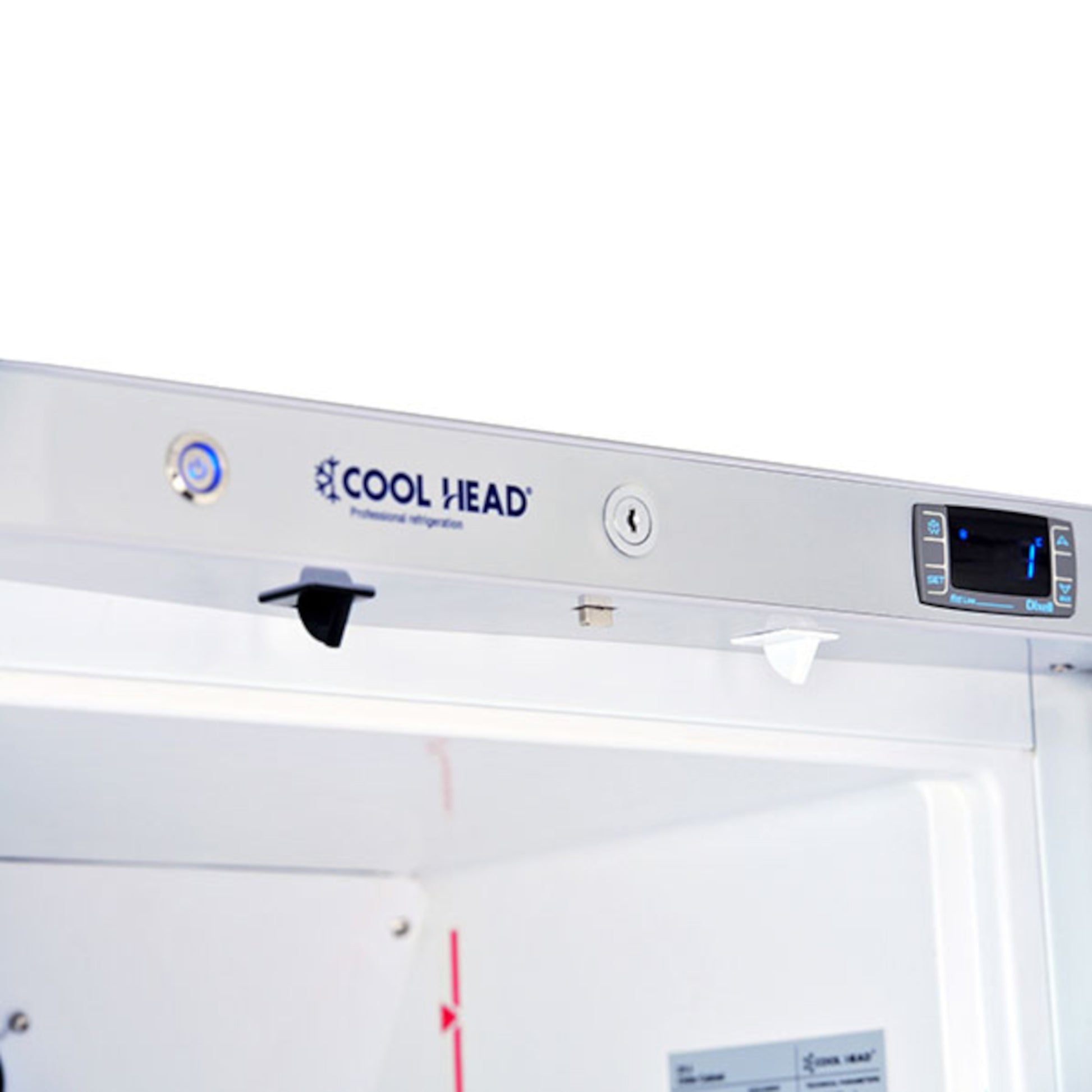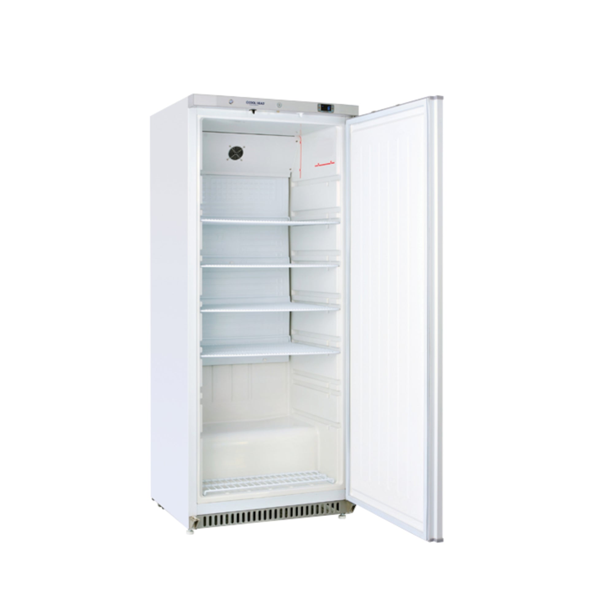 Armário refrigerado GN2/1, de classe A, com exterior em branco. Inclui termostato digital, alarmes de porta aberta e alta temperatura e prateleiras ajustáveis em altura.