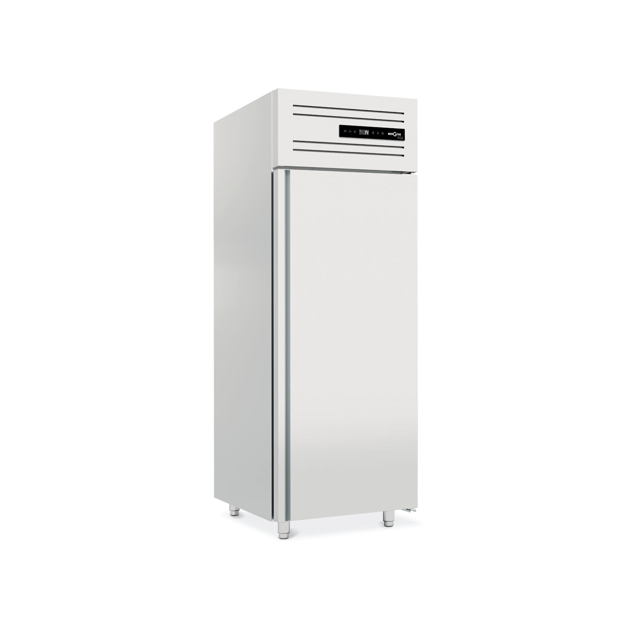 O armário frigorífico vertical GN 2/1 é uma prova do desempenho excepcional e da adesão aos mais elevados padrões de segurança alimentar. A sua robusta construção monocoque em aço inoxidável de qualidade alimentar garante durabilidade e higiene, enquanto o controlo preciso da temperatura entre +1 °C e +5 °C garante a frescura dos itens armazenados. Equipado com refrigerante natural R290, o armário possui controlador eletrónico com display digital para fácil operação.