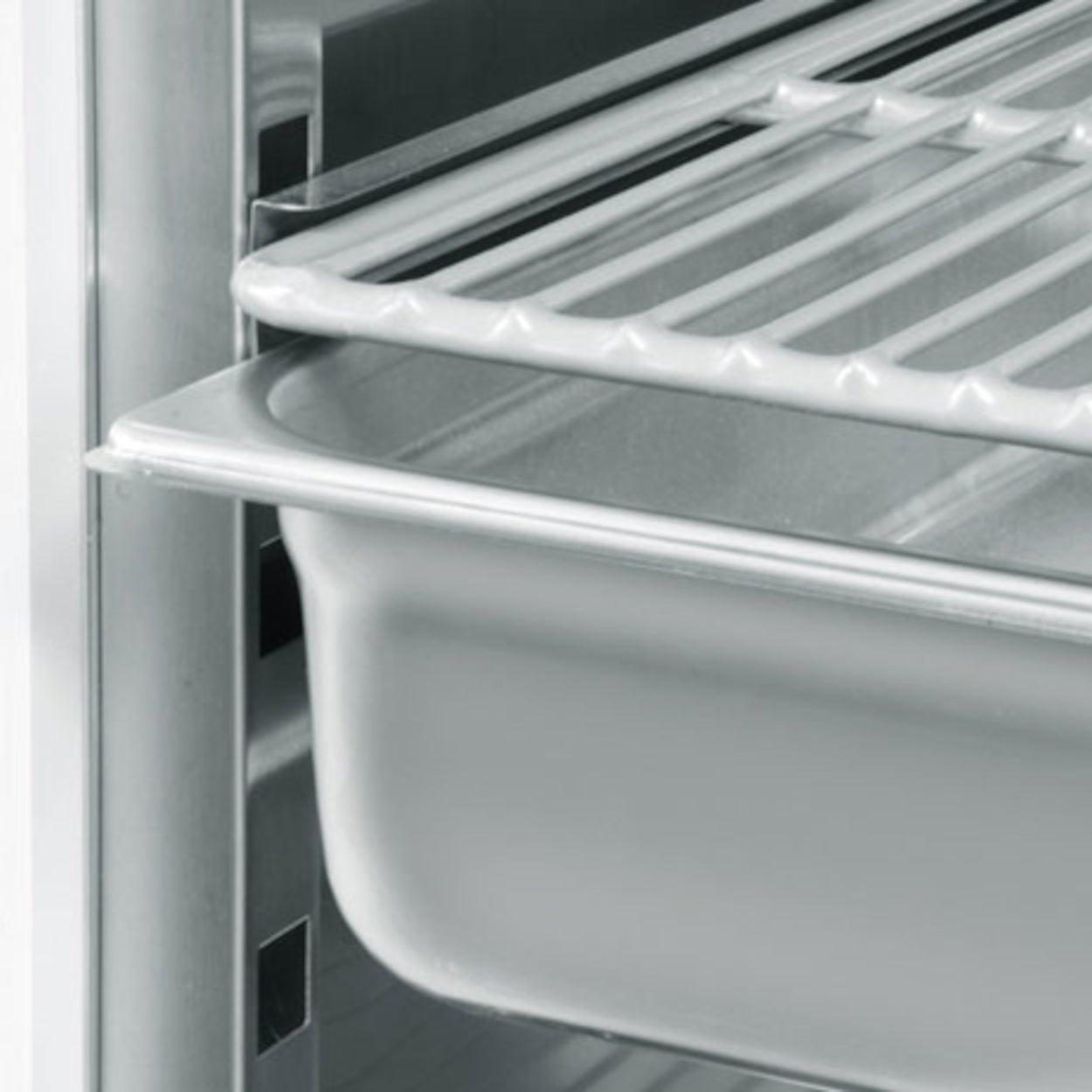 - Humidade relativa elevada: devido aos evaporadores entre portas e o fluxo de ar suave, o que previne a desidratação dos alimentos frescos.