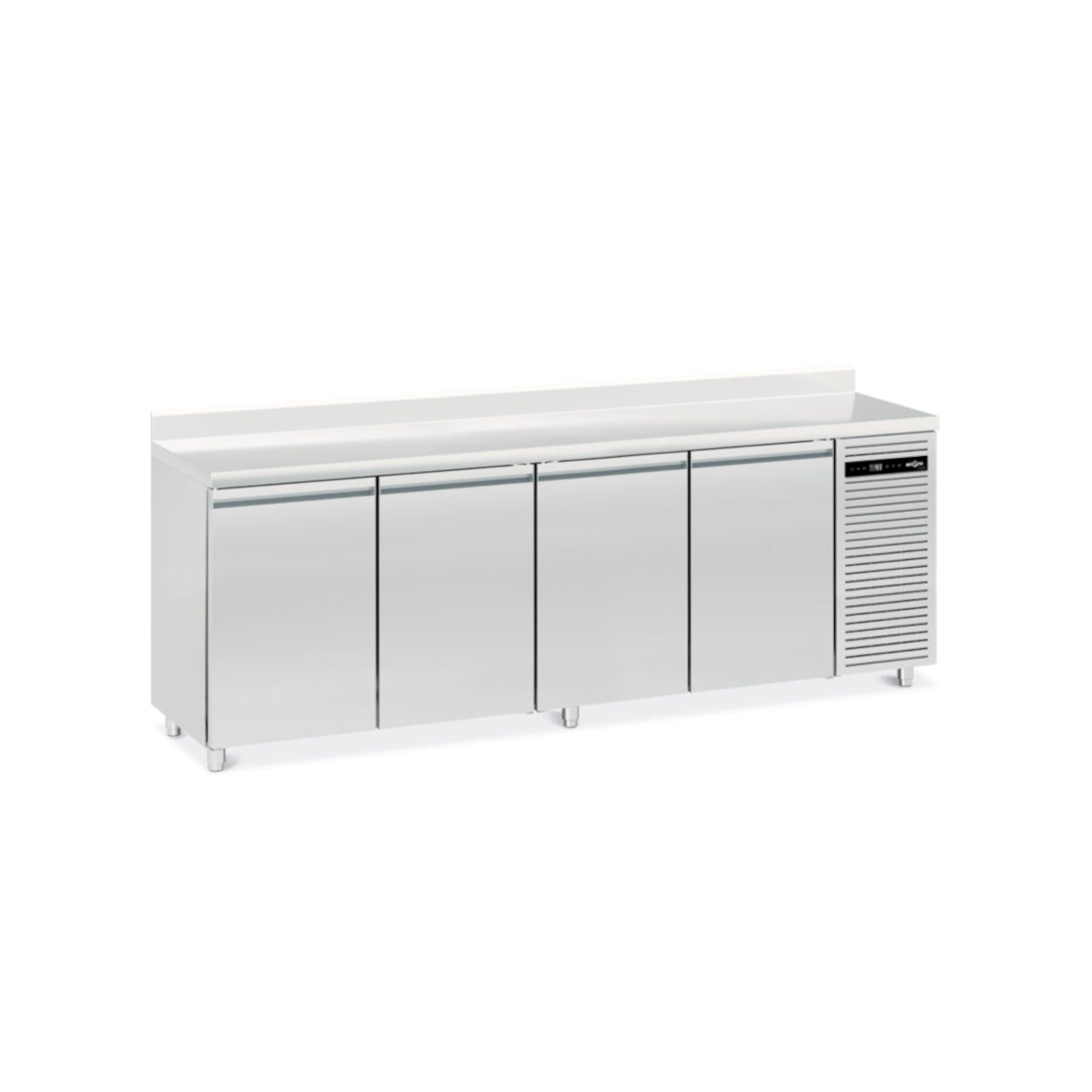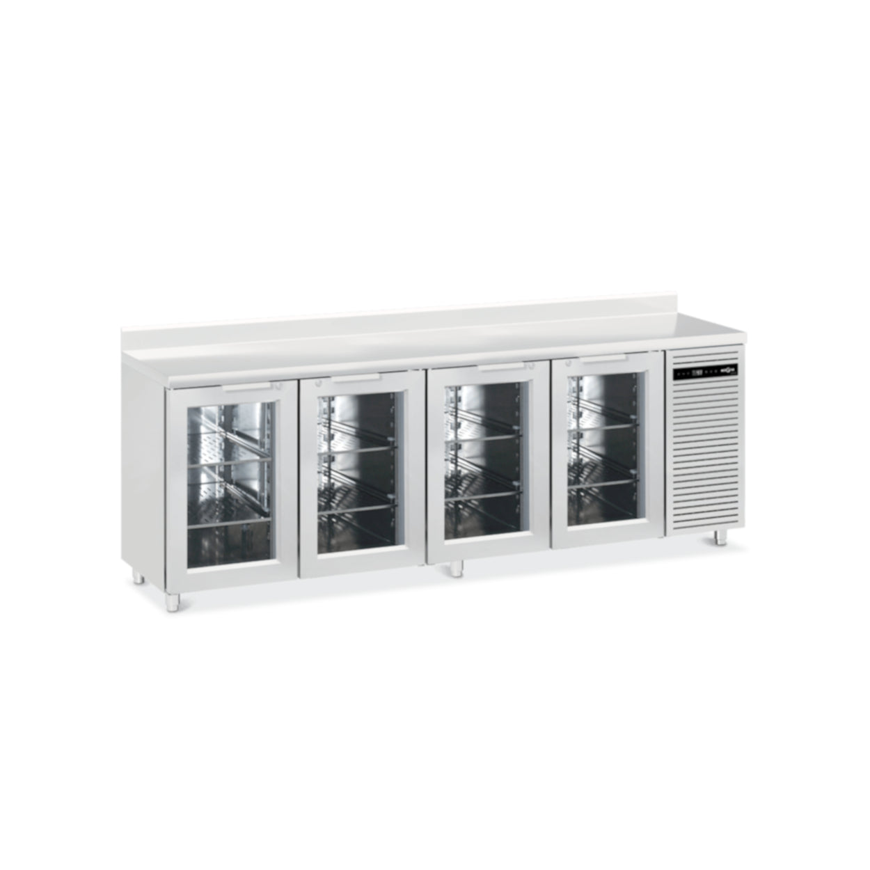 Projetado para atender às necessidades dinâmicas de bares e padarias, o balcão L0 é o epítome da eficiência e versatilidade na refrigeração de garrafas. A sua estatura é compacta e alta, tornando-o ideal para qualquer espaço. O contador funciona dentro de uma faixa de temperatura de +4 °C a +8 °C, graças ao refrigerante ecológico R290. Possui um sistema de estantes capaz de acomodar até sete prateleiras de 40x48 cm por porta, garantindo que diversas garrafas possam ser resfriadas simultaneamente. O contador L0 foi projetado com vários recursos para aprimorar o fluxo de trabalho, incluindo um sistema de degelo automático que funciona fora do ciclo e evapora a água do degelo, bem como grandes evaporadores localizados no espaço vazio atrás dos montantes da porta. O controlador eletrônico simplifica a operação com seu display digital e teclado de toque plano. Com sete pares de controles deslizantes incluídos, o balcão pode conter bandejas em prateleiras de 40x48 por seção, e as estantes de aço inoxidável são projetadas para fácil remoção sem ferramentas. Por último, a ventilação respiratória frontal garante que o desempenho do contador permaneça confiável, mesmo nos ambientes mais movimentados.