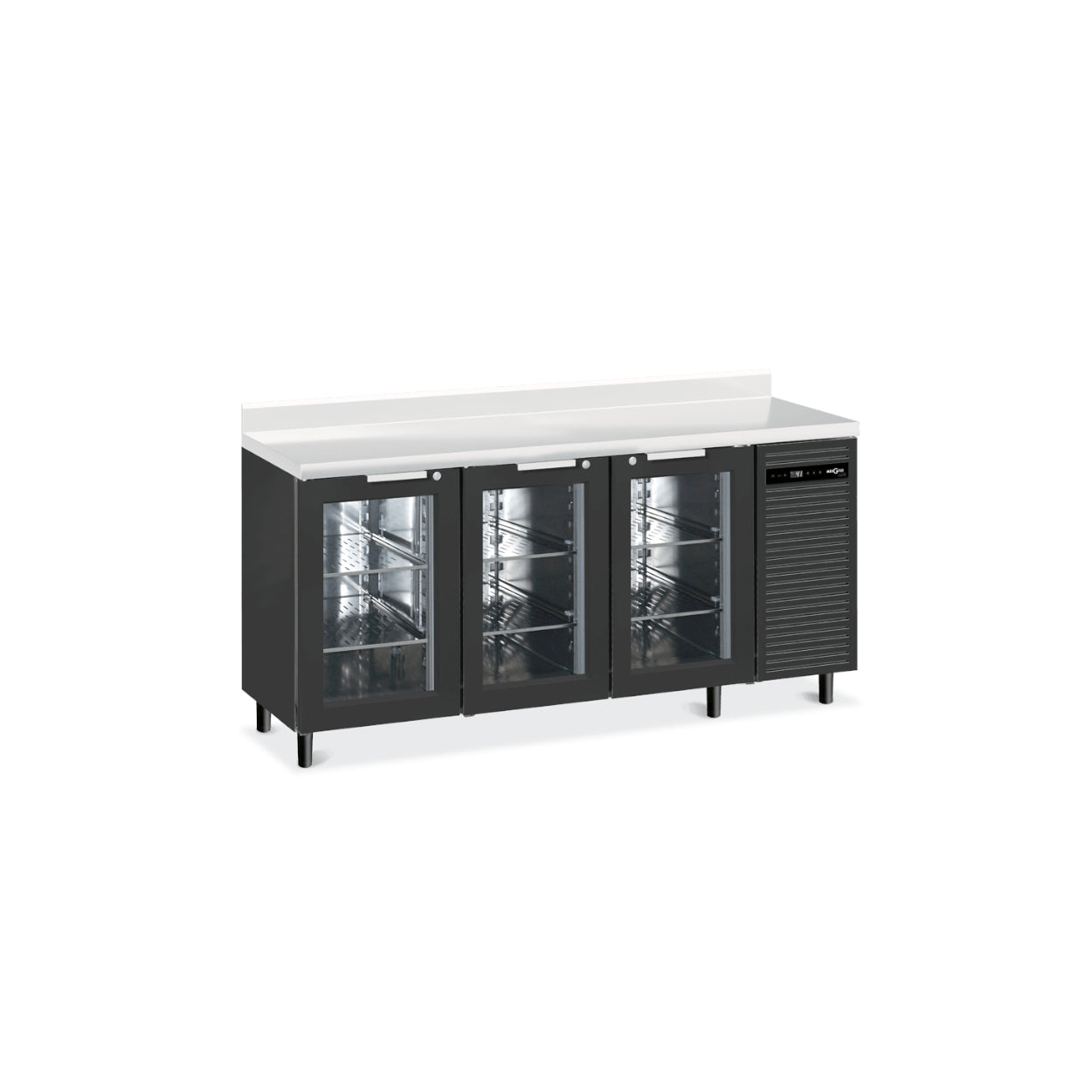 O balcão L4 é um equipamento essencial para qualquer bar ou cafetaria, apresentando um design elegante e compacto que se destaca para um arrefecimento eficiente das garrafas. O sistema de estantes do balcão foi projetado para acomodar até sete prateleiras de 40x48 cm por porta, garantindo amplo espaço de armazenamento. Possui sistema de degelo automático fora do ciclo, complementado por mecanismo de evaporação da água de degelo, que, aliado a grandes evaporadores estrategicamente posicionados atrás dos montantes das portas, garantem um resfriamento consistente. Vem também equipado com um refrigerante natural R290 e mantém uma faixa de temperatura operacional de +4 °C a +8 °C.