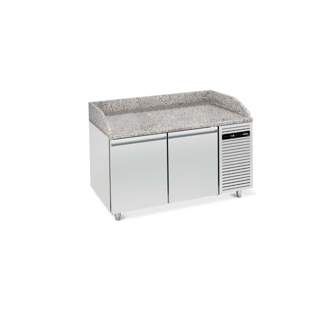 A bancada de preparação L6 é o sonho de qualquer pizzaiolo, combinando perfeitamente forma e função para criar o espaço perfeito para a preparação de pizza. Com a sua robusta bancada de granito e convenientes prateleiras sob o balcão, mantém ingredientes essenciais e massa ao alcance do braço. A construção monobloco em aço inoxidável da mesa e o controle preciso da temperatura, variando de +1 °C a +4 °C, garantem que os produtos permaneçam frescos e prontos para uso. O controlador eletrônico com display digital permite fácil monitoramento e ajuste, enquanto a escolha dos modos de resfriamento oferece versatilidade para se adequar a qualquer receita. Projetado pensando na praticidade, o L6 possui pernas ajustáveis e racks removíveis, tornando-o tão adaptável quanto confiável. Esta mesa de preparação não é apenas um equipamento; é a base de uma cozinha eficiente e de alto desempenho.