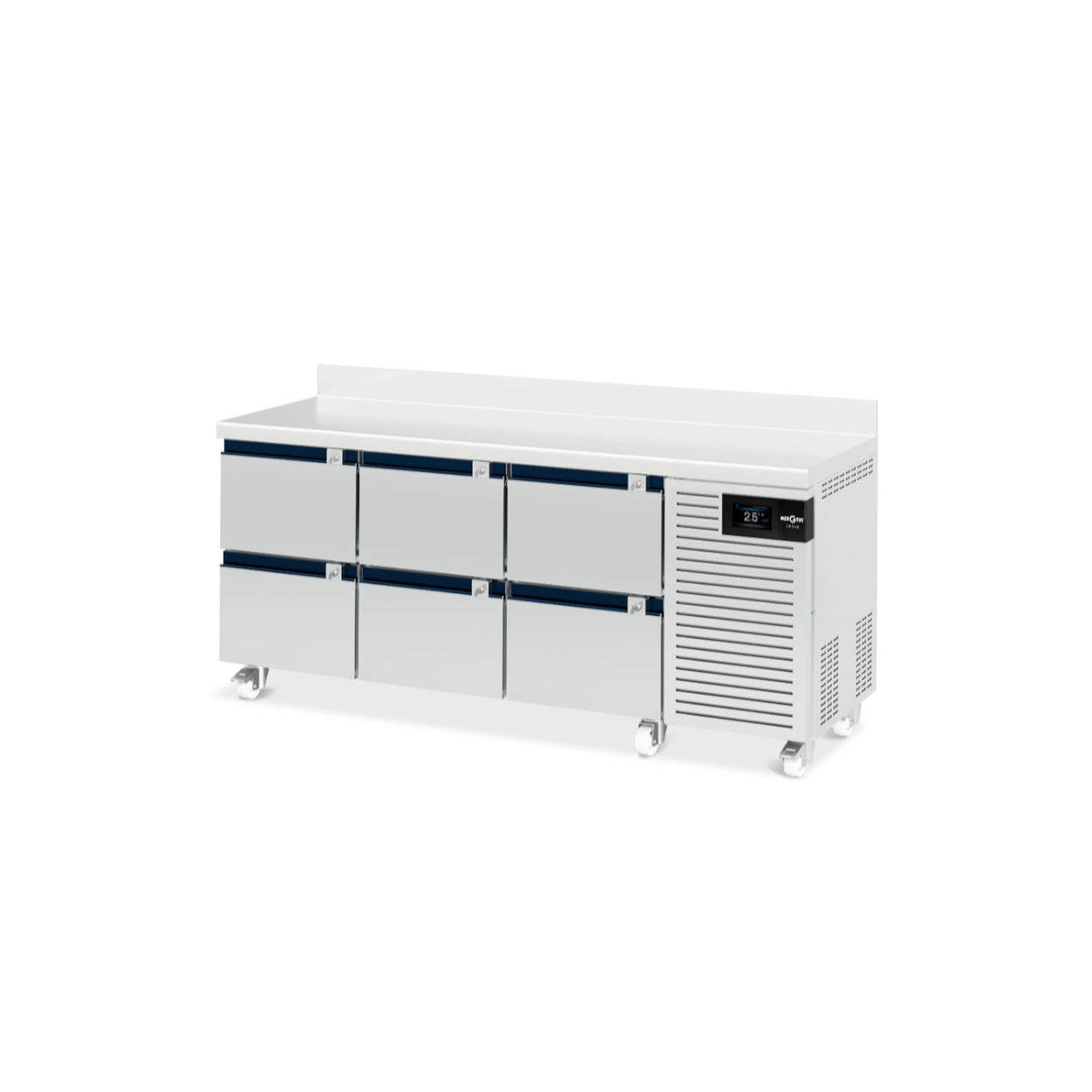 - Humidade relativa elevada: devido aos evaporadores entre portas e o fluxo de ar suave, o que previne a desidratação dos alimentos frescos.