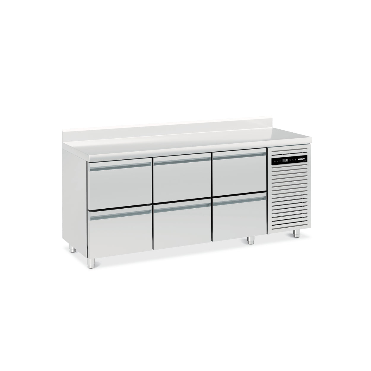 A unidade L1 é um modelo de adaptabilidade e eficiência, adaptando-se perfeitamente até mesmo aos espaços mais confinados, graças à sua pouca profundidade. Fabricado em aço inoxidável monocoque de qualidade alimentar, mantém uma faixa de temperatura operacional ideal para segurança alimentar. A unidade é ecologicamente correta, utilizando refrigerante natural R290 e contando com sistema de degelo automático que garante a evaporação da água do degelo. O seu resfriamento por tiragem forçada e o seu grande evaporador, estrategicamente posicionados para maximizar o espaço, trabalham em conjunto para fornecer temperaturas consistentes. O controlador eletrónico, com display digital e teclado de toque plano, permite uma fácil operação e monitoramento. A estabilidade e a durabilidade são garantidas com pernas telescópicas ajustáveis e uma bancada espessa e robusta. O design do L1 também inclui controles deslizantes em forma de 'E' para organização eficiente dos containers Gastronorm, enquanto as prateleiras de aço inoxidável podem ser removidas sem ferramentas, simplificando a manutenção. Além disso, a ventilação respiratória frontal da unidade garante um desempenho confiável, tornando-a uma escolha inteligente para cozinhas profissionais que procuram otimizar o seu espaço e fluxo de trabalho.