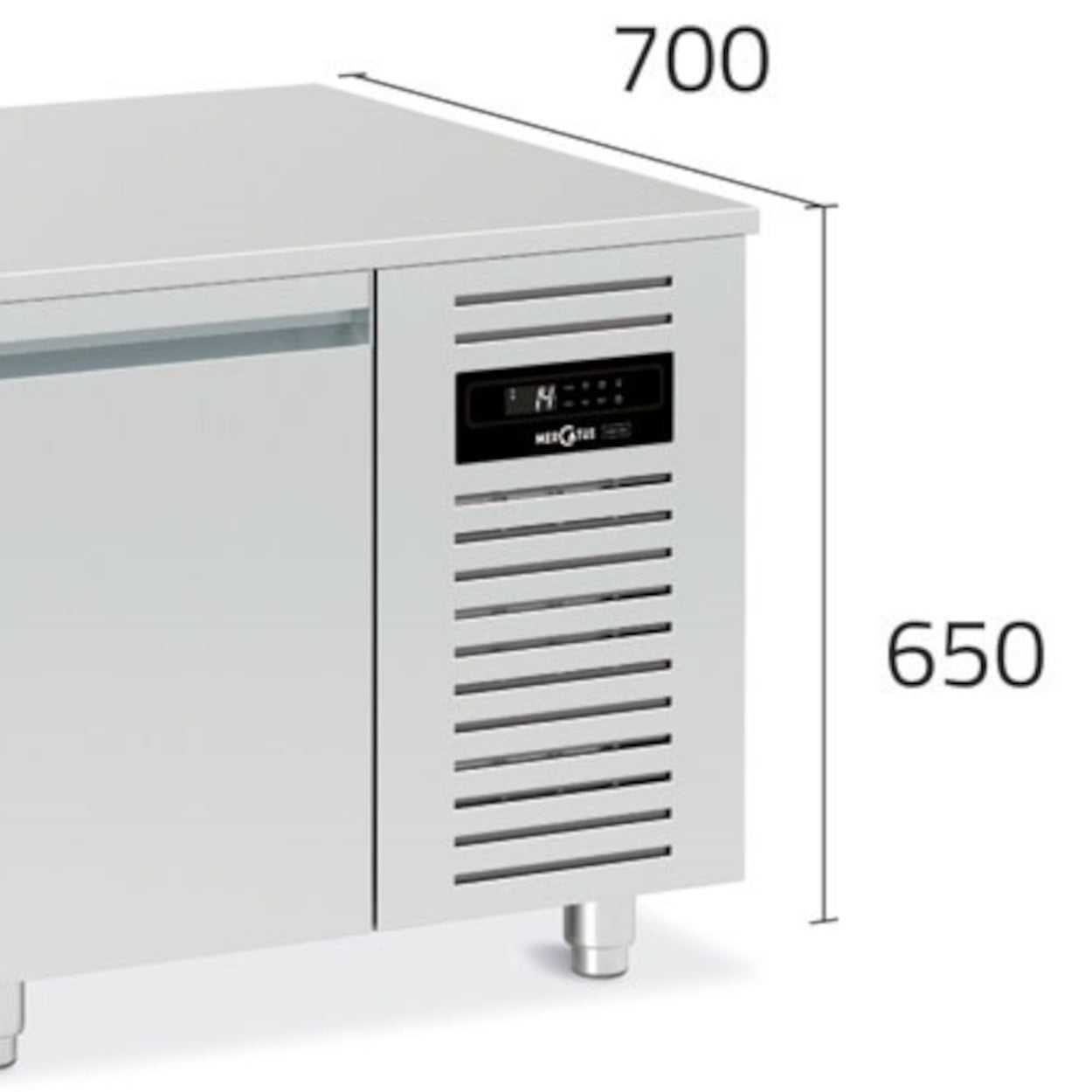 Esta base de congelação é uma solução de última geração para cozinhas profissionais, projetada para manter os alimentos congelados ao alcance da mão na área de preparação, maximizando a eficiência do espaço e melhorando a circulação na cozinha. A sua construção robusta em aço inoxidável monocoque de qualidade alimentar é construída para durar e opera numa faixa de temperatura fria de -18 °C a -22C. A unidade é ecologicamente correta, utiliza refrigerante natural R290 e está equipada com gavetas GN1/1 que garantem acesso ergonômico aos ingredientes. O recurso de degelo automático, juntamente com a evaporação da água de degelo por parada, garantem que a manutenção seja descomplicada. Um sistema de resfriamento de tiragem forçada, grandes evaporadores e um fio de aquecimento integrado trabalham em conjunto para manter uma temperatura consistente por toda parte. O controlador eletrónico com o seu display digital e teclado de toque plano oferece uma operação intuitiva, enquanto as pernas telescópicas ajustáveis em aço inoxidável e a bancada espessa e reforçada proporcionam versatilidade e uma base sólida para os elementos de cozinha. A ventilação respiratória frontal garante um desempenho confiável do equipamento sob as condições mais exigentes, e a gaveta GN1/1 de cada secção, com capacidade de 1x GN1/1-200, oferece amplo espaço de armazenamento para uma experiência de cozimento simplificada.