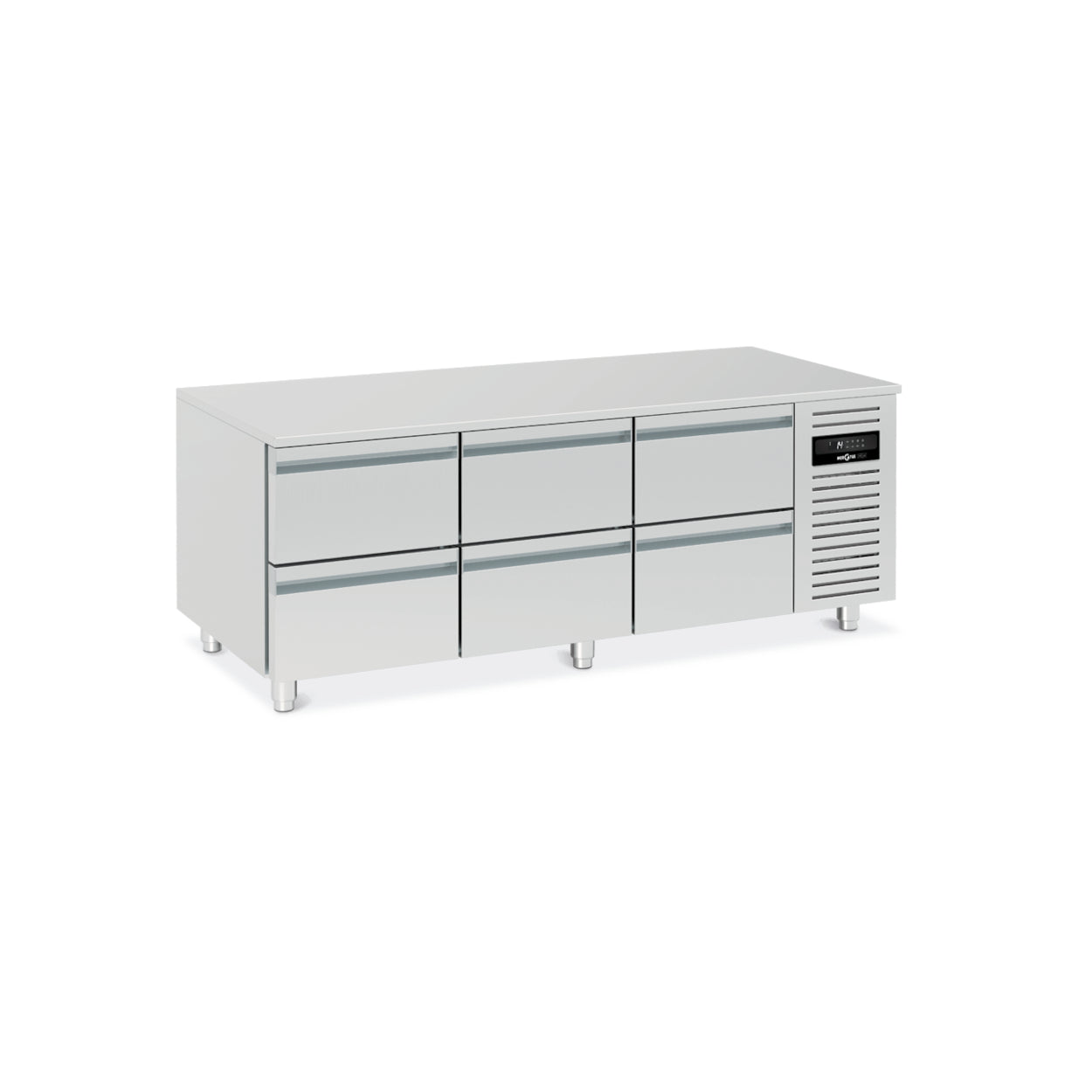A base refrigerada U1 é uma maravilha da engenharia culinária, concebida para agilizar o fluxo de trabalho em cozinhas profissionais. Esta base modular de confecção é a companheira perfeita para chefs que necessitam de produtos alimentares refrigerados à mão. Com a sua temperatura de funcionamento mantida entre +1 °C e +5 °C, é ideal para manter frescos e acessíveis os alimentos prontos a cozinhar. A construção monocoque da unidade em aço inoxidável de qualidade alimentar garante durabilidade e conformidade com os padrões de higiene. Também é ecológico, funciona com refrigerante natural R290 e possui gavetas GN1/1 ergonomicamente projetadas para facilidade de uso. O U1 conta um sistema de degelo automático que também evapora a água do degelo por parada. O seu sistema de resfriamento por tiragem forçada, aliado a grandes evaporadores estrategicamente posicionados atrás dos montantes, garantem uma distribuição de resfriamento uniforme e eficiente. O controlador eletrónico, com display digital fácil de usar e teclado plano, permite um gerenciamento preciso da temperatura. A base assenta em pernas telescópicas ajustáveis de aço inoxidável, tornando-a versátil para qualquer configuração de cozinha e, a ventilação respiratória frontal garante um desempenho confiável da unidade, mesmo nas condições mais exigentes. Cada seção do U1 vem com uma gaveta GN1/1, proporcionando amplo espaço com uma gaveta com capacidade de 1x GN1/1-200, tornando-o um bem indispensável para qualquer ambiente de cozinha movimentado.