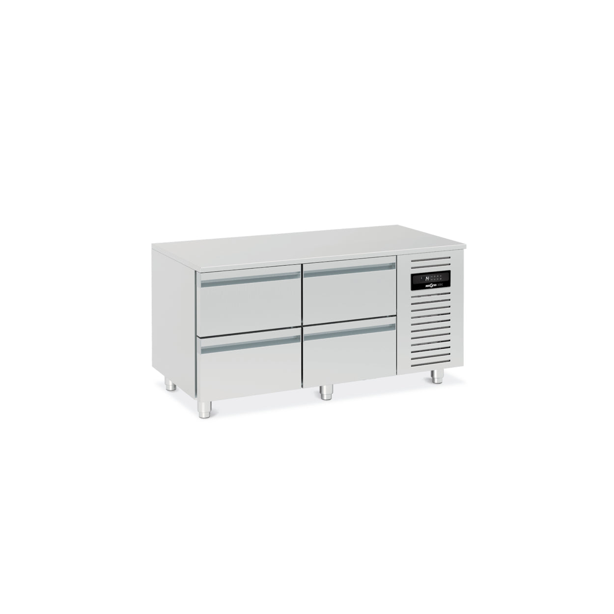 O modelo U3 é uma adição elegante a qualquer cozinha profissional, oferecendo uma base de resfriamento compacta que se integra perfeitamente em configurações de cozimento modulares. Esta base foi projetada para trazer alimentos resfriados bem próximos à área de preparação, aumentando a eficiência ao otimizar o espaço e melhorar o fluxo de trabalho. É particularmente adequado para conservar produtos prontos a cozinhar, mantendo-os a uma temperatura ideal de funcionamento de +1 °C a +5 °C. Fabricado em aço inoxidável monocoque de qualidade alimentar, não só garante robustez, mas também segue os mais altos padrões de higiene. O U3 é ecologicamente correto, utiliza refrigerante natural R290 e possui gavetas GN2/3 que promovem o uso ergonômico. O seu sistema de degelo automático e a evaporação da água de degelo por parada facilitam a manutenção. O sistema de resfriamento por tiragem forçada, juntamente com grandes evaporadores, garantem um desempenho de resfriamento consistente e confiável. O controlador eletrónico, completo com display digital e teclado plano, oferece precisão e facilidade de controle. As pernas ajustáveis em aço inoxidável permitem a personalização da altura, enquanto a bancada em aço inoxidável de qualidade alimentar proporciona uma superfície robusta e limpa para a preparação de alimentos. A ventilação respiratória frontal garante um desempenho confiável mesmo nos ambientes de cozinha mais movimentados. Cada seção vem equipada com uma gaveta GN2/3, projetada para acomodar 1 container GN2/3-200, tornando o U3 uma ferramenta indispensável para chefs que valorizam eficiência, confiabilidade e qualidade em suas criações culinárias.