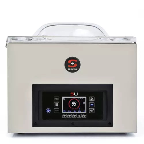 Embaladora com controlo de vácuo por sensor, com LCD a cores e teclado táctil retroiluminado, com memória de 99 programas, opção de bloqueio e botão “pausa” para marinar alimentos.