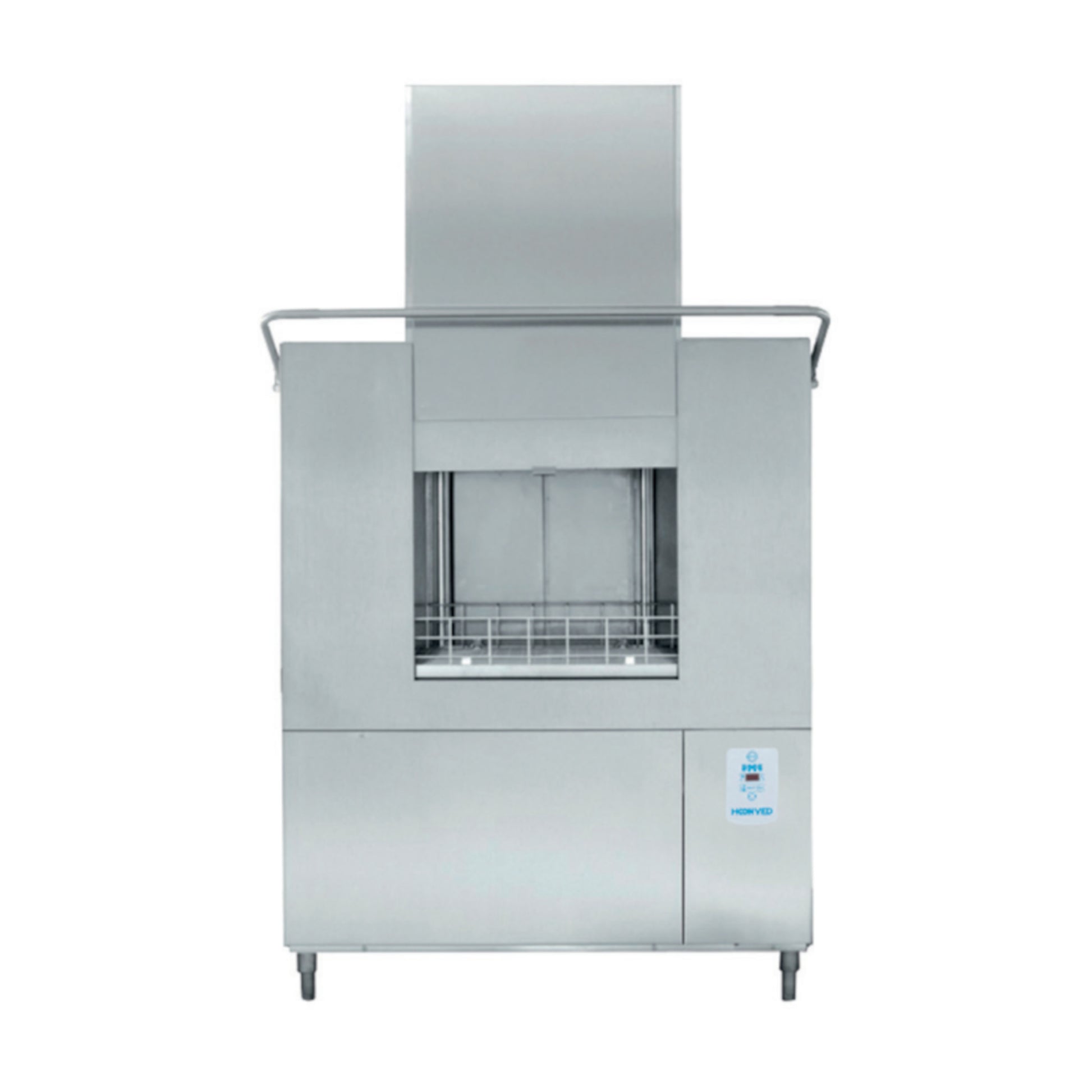 Estrutura com painel duplo e braços rotativos de lavagem e enxaguamento em aço inoxidável AISI 304. Interior do equipamento totalmente arredondado, para uma limpeza mais fácil e eficaz.