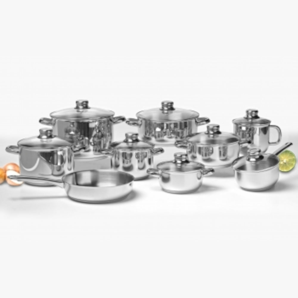 Conjunto ATENAS, composto por uma variedade de panelas e caçarolas, ideal para preparar uma ampla gama de pratos com eficiência e estilo.