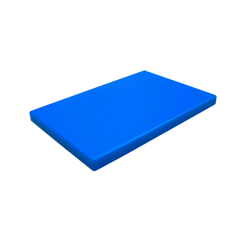 Tábua azul para corte de alimentos, proporcionando uma superfície estável e segura para cortar e preparar comida.