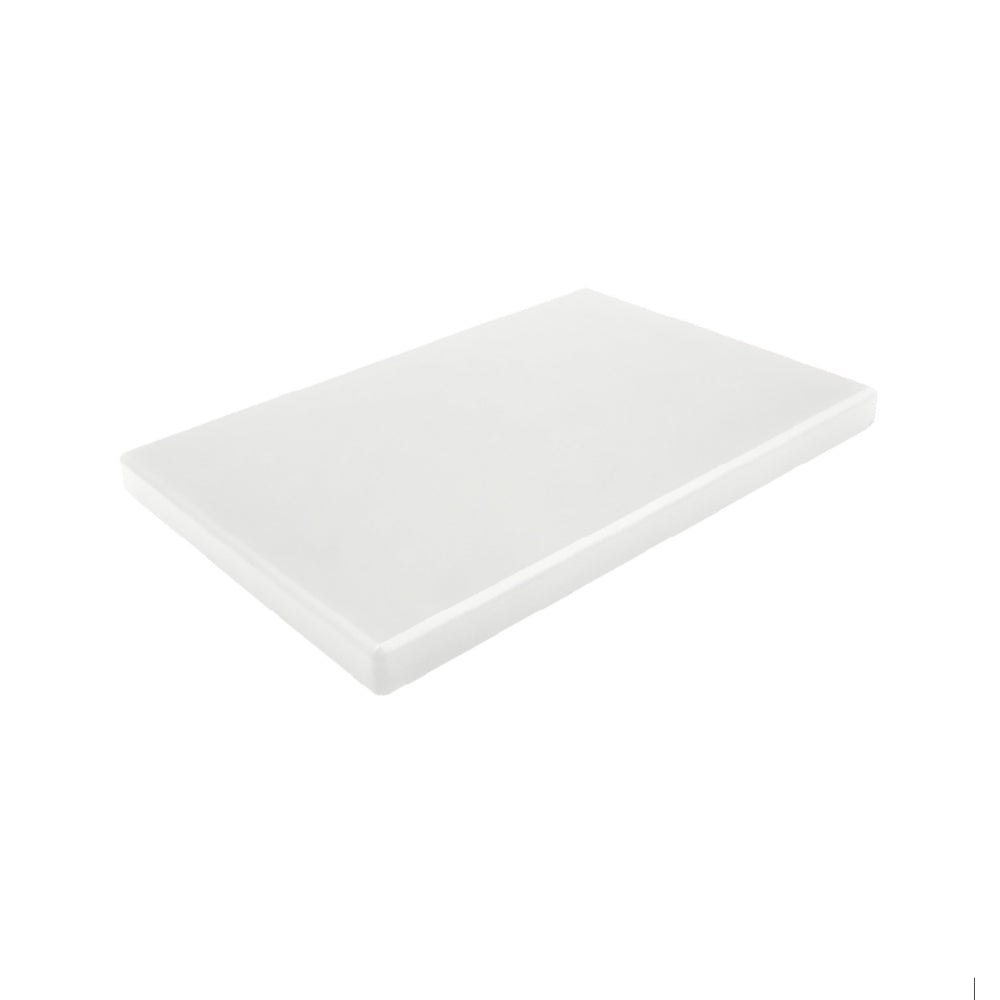 Tábua branca para corte de alimentos, proporcionando uma superfície estável e segura para cortar e preparar comida.