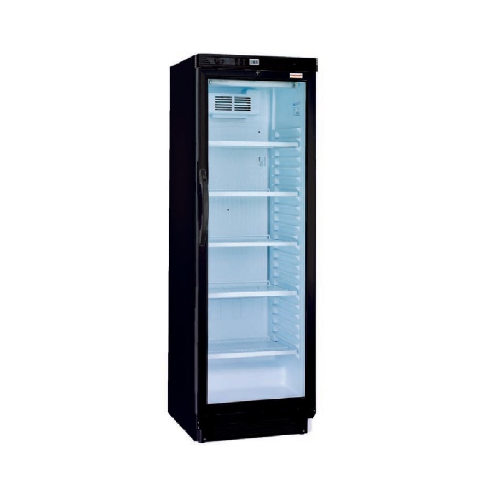 Construída externamente em aço pré-lacado preto com tratamento anticorrosivo, interior construído em ABS, portas em vidro duplo temperado, esquadrias em alumínio, luz LED superior e na lateral direita e termostato eletrónico digital.